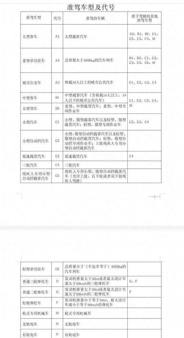 驾驶证代号分为A、B、C、D等多个等级,其中C级驾照共分为C1到C6六个类别。